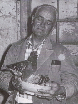 ***** Friend of the house and "soigneur" at the Aarden loft Toon Stoffelen became famous by the “Oude Witpen”, a son of the old couple. He was the father of two miracle hens: “Mooike” and “Kleintje” and a few others. These hens dominated the National races for a while! All the pigeons of Stoffelen were sold by Piet Lazeroms. See the photo of Toon Stoffelen: